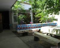 Огороженный бетонными плитами.Возле участка проходит центральная канализация. Постройка зделана из блока ракушняка, имеет два этажа, накрыта крыша из металопрофиля. Имеет 14 комнат, предназначенных для людей отдыхающих возле моря.На первом этаже кухня и небольшая столовая. Есть место для других построек.